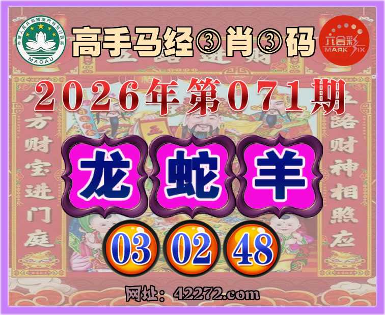 071期: 『高手马经』 ③肖③码【龙蛇羊】【03.02.48】开:羊48准见证上榜