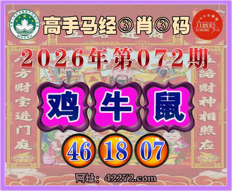 072期: 『高手马经』 ③肖③码【鸡牛鼠】【46.18.07】开:鸡46准